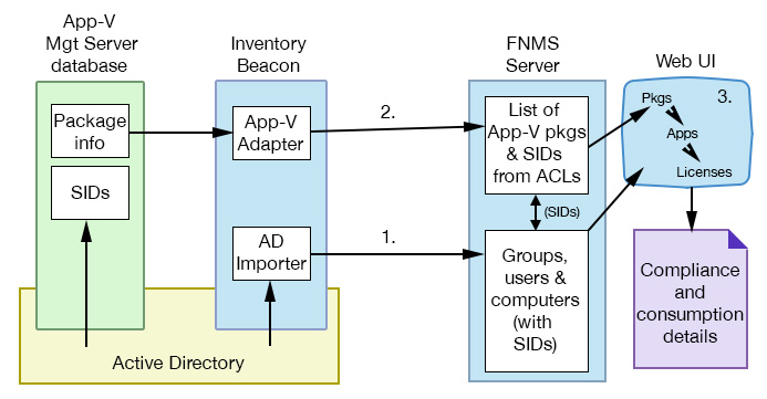 This discussion applies to use of Microsoft App-V server infrastructure, streaming applications to App-V clients on end-point devices. (Where applications are instead installed by Microsoft Endpoint Configuration Manager (previously Microsoft SCCM), use the inventory import from Microsoft Endpoint Configuration Manager instead of this adapter.)